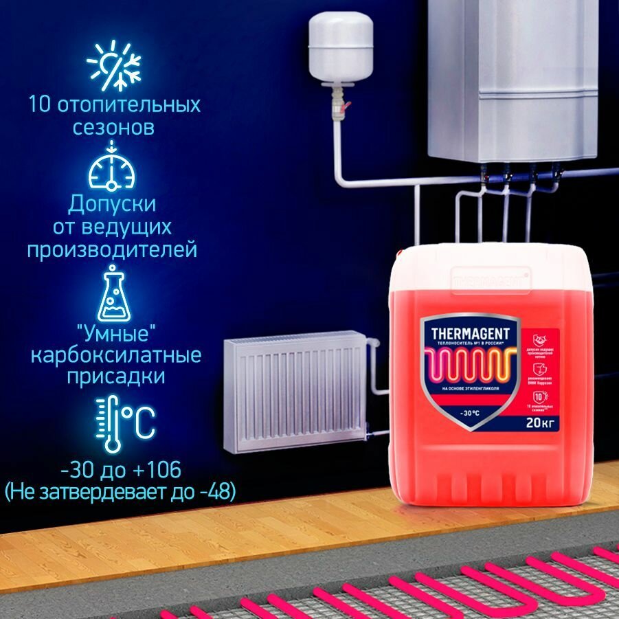 Отзывы на Теплоноситель Обнинскоргсинтез THERMAGENT -30 20 кг (Этиленгликоль)