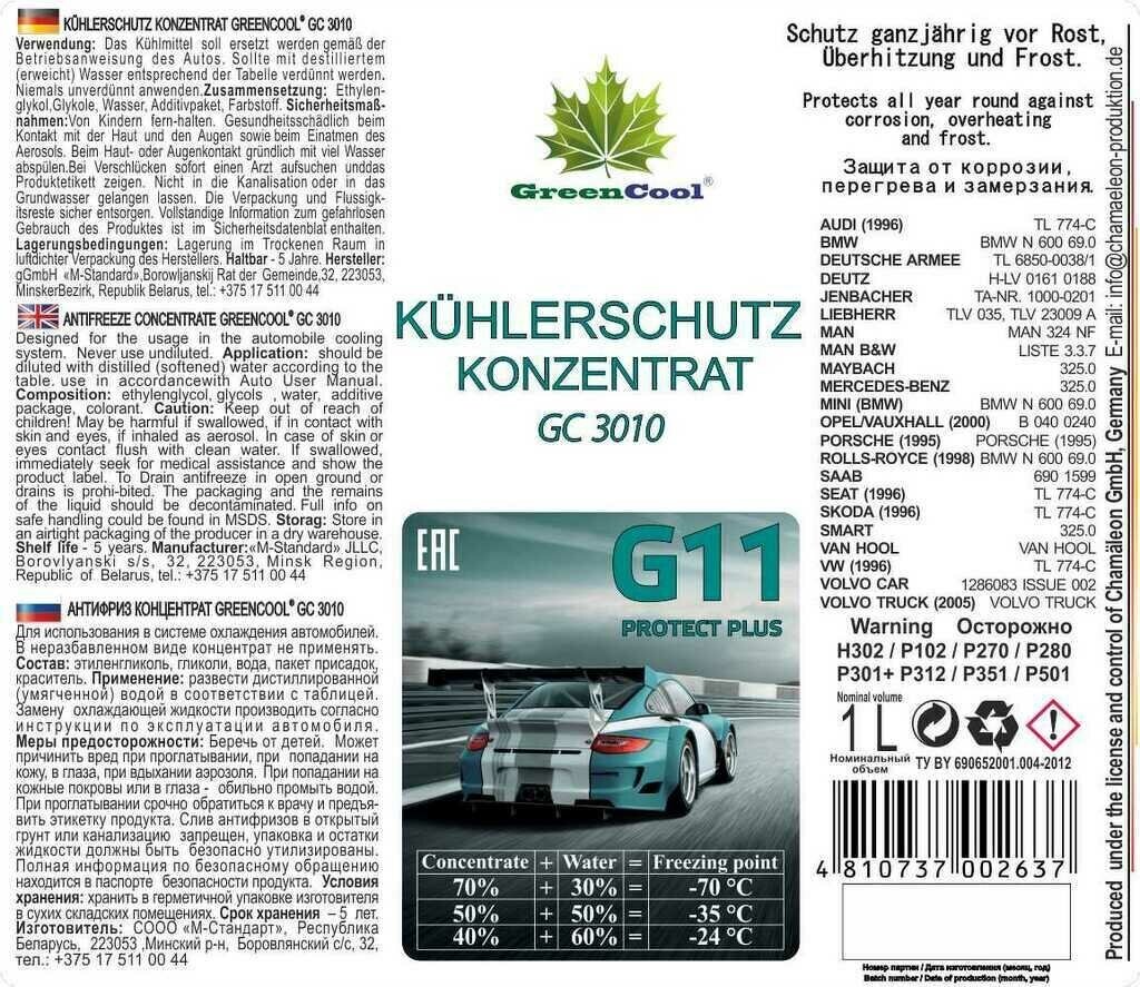 10 цен на GREENCOOL 702637 Антифриз GreenCool GС3010 1L концентрат (синий)