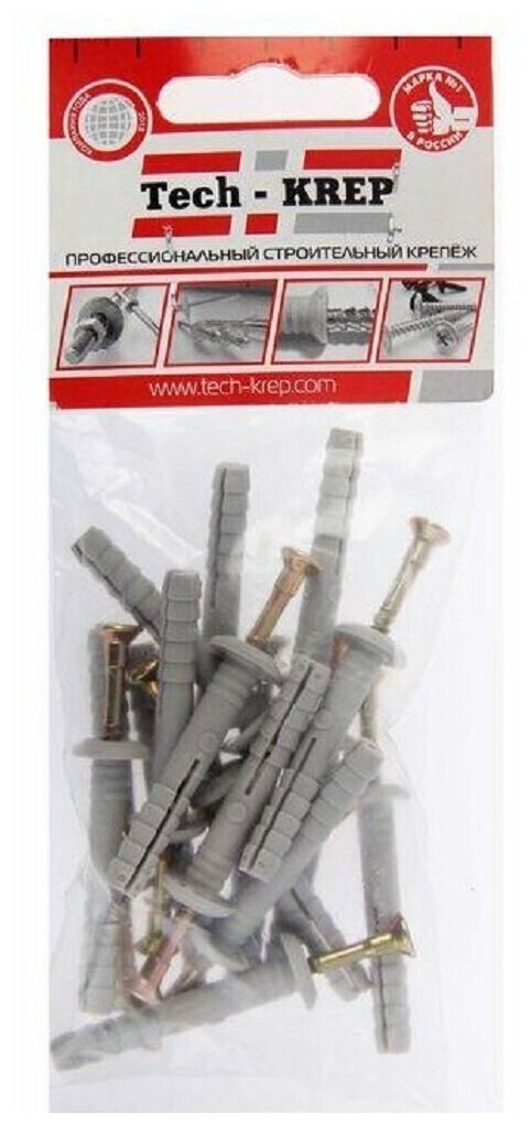 Дюбель-гвоздь Tech-Krep 6х40 грибовидная манжета, полипропилен 16 шт - пакет 102945 442 ₽