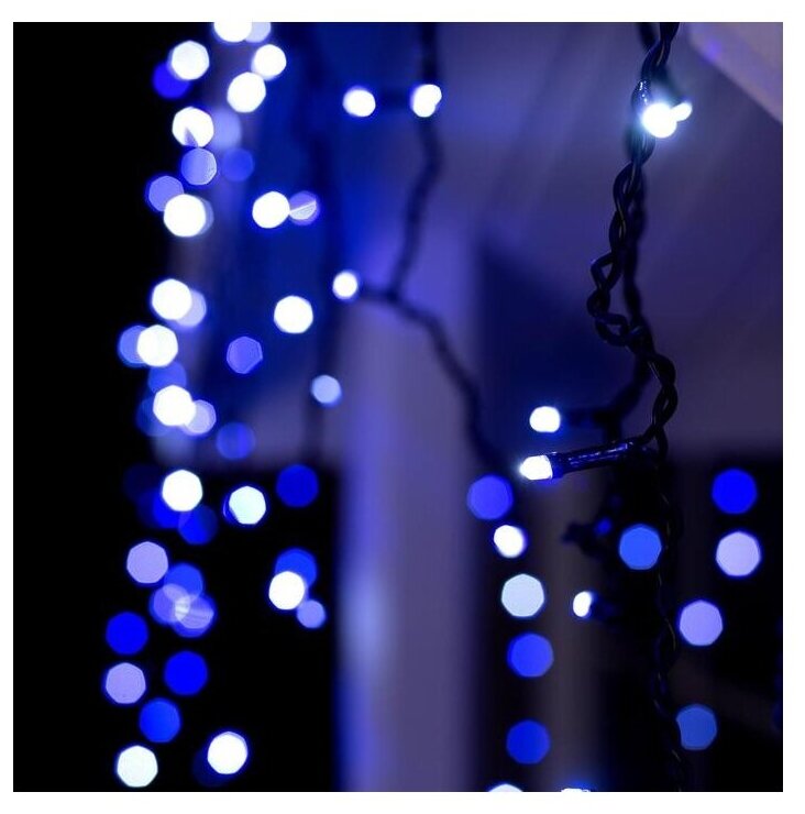 Отзывы на Гирлянда «Бахрома» 4 × 0.6 м, IP44, тёмная нить, 180 LED, свечение бело-синее, мигание, 220 В
