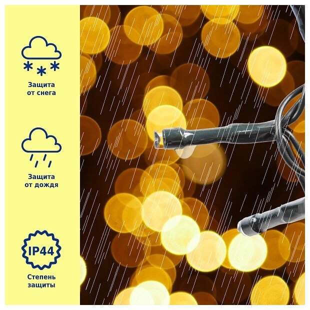 Гирлянда новогодняя электрическая на елку 7,4 метров для дома и для улицы, 370 лампочек, теплый белый свет