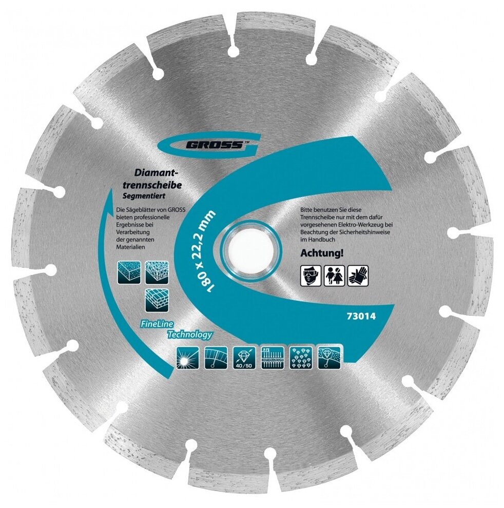 Диск алмазный ф180х22,2мм, сегментный, упорядоченный алмаз, сухое резание, Gross 73014 4044996033082 .
