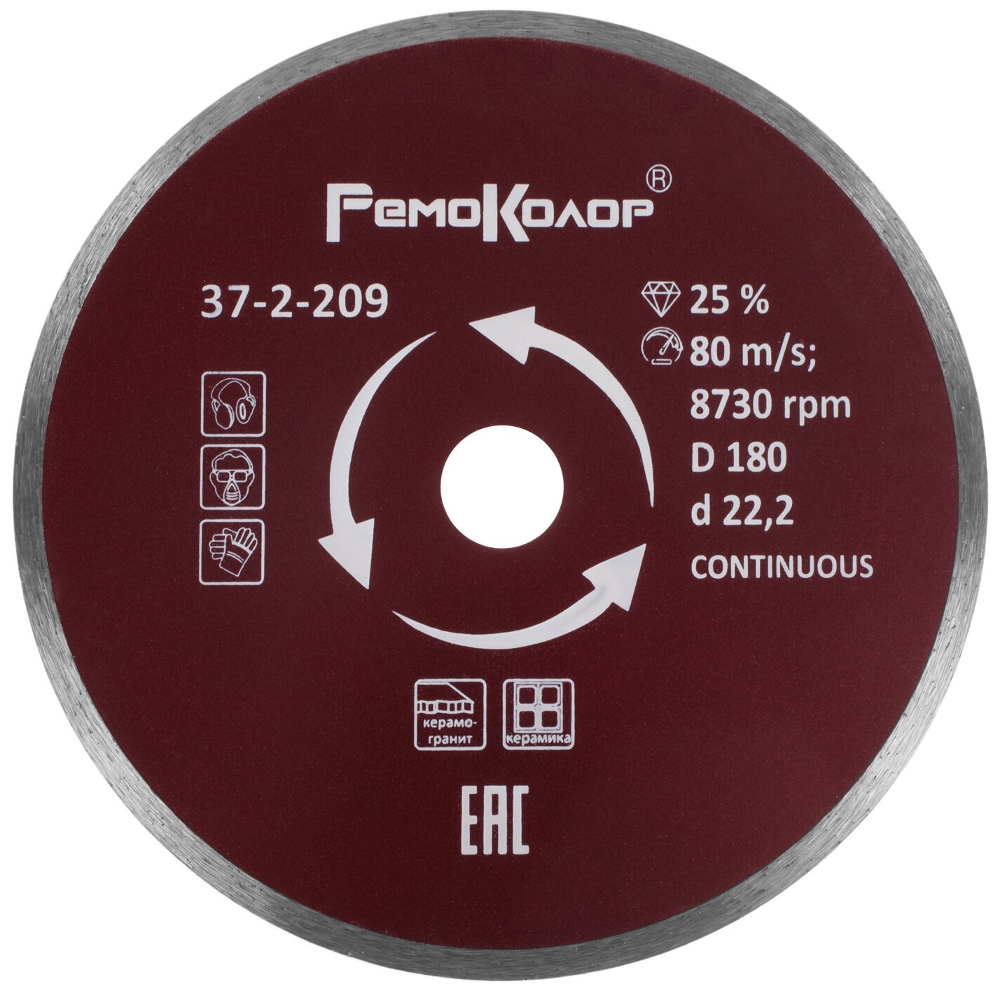 Круг отрезной алмазный 180 х 22,2 сплош. сухая резка РемоКолор информация: