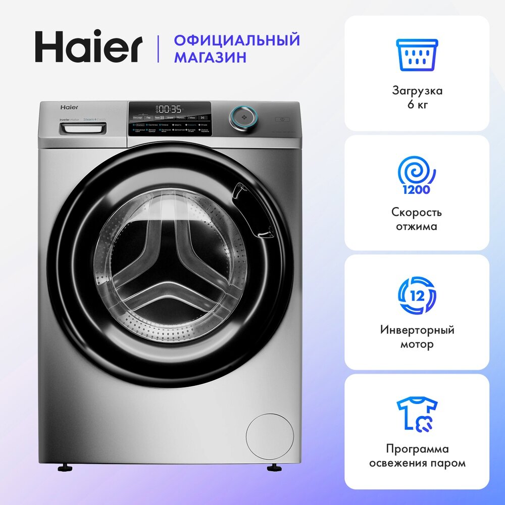 Стиральная машина Haier HW60-BP12959AS серебристая информация: