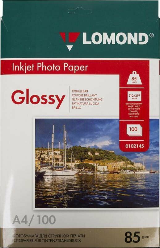 Фотобумага Lomond A4, 85г/м2, 100л, для струйной печати, белый, покрытие глянцевое [0102145]