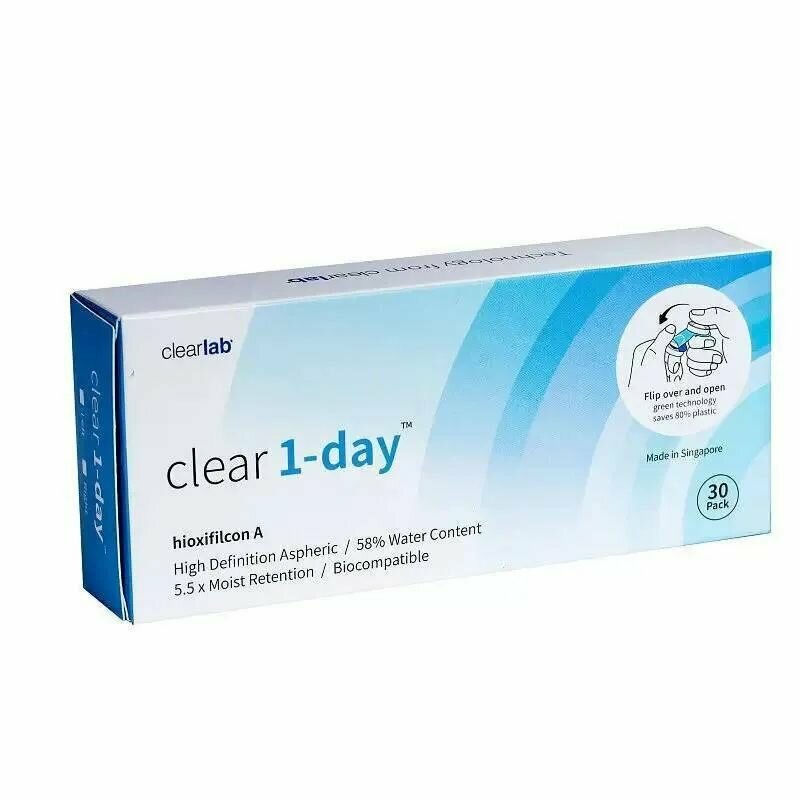 Clear 1-Day 30 линз В упаковке 30 штук Оптическая сила -5.25 Радиус кривизны 8.7
