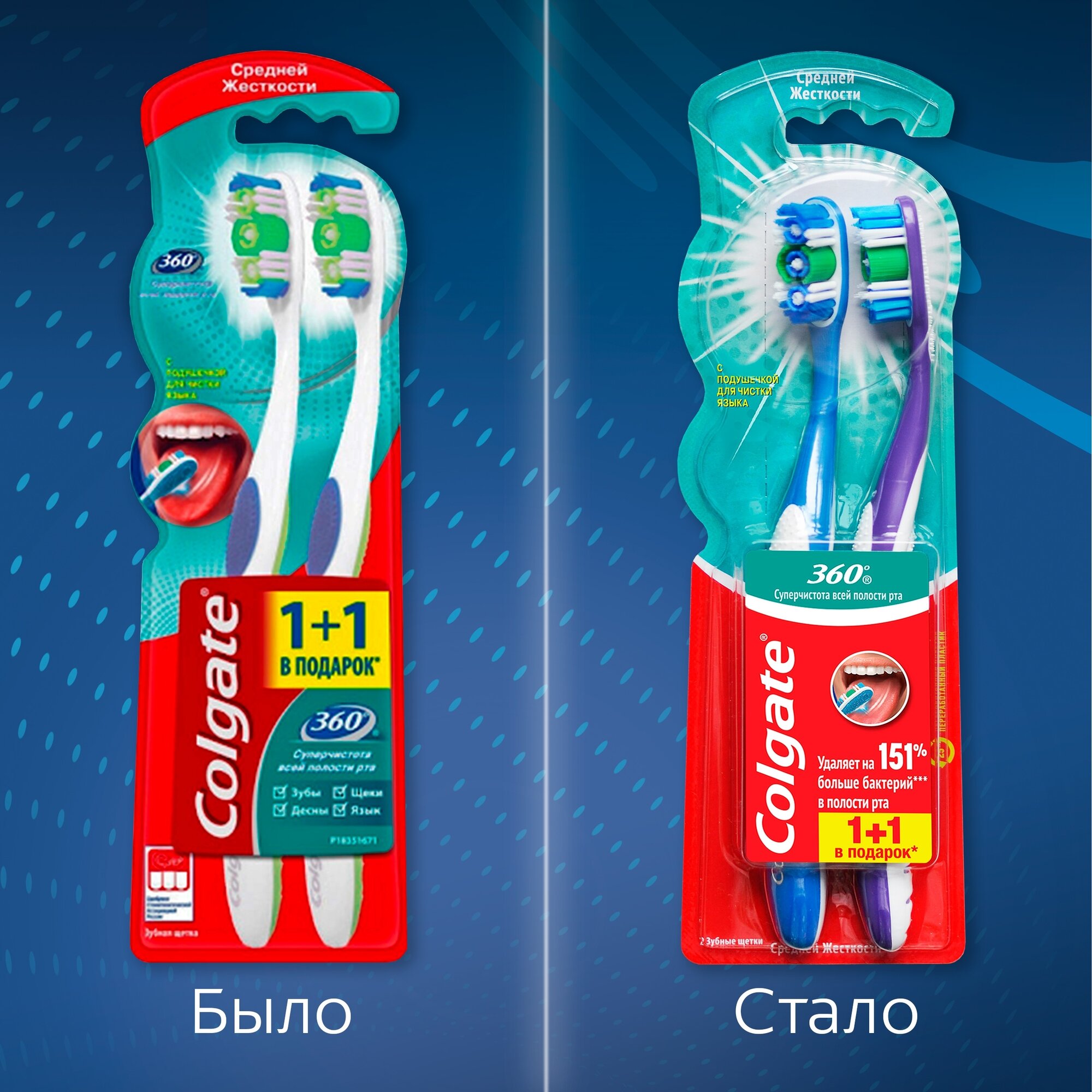 10 цен на Colgate 360 Зубная щетка Суперчистота средняя, 2 шт в упаковке