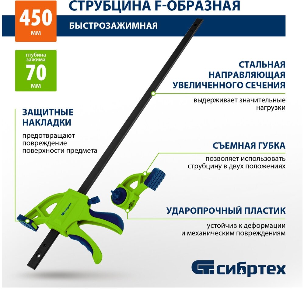 Отзывы на СИБРТЕХ Струбцина F-образная, быстрозажимная, 450 х 70 х 660 мм, пластиковый корпус, фиксатор, двухкомпонентная рукоятка Сибртех, ( 20566 )