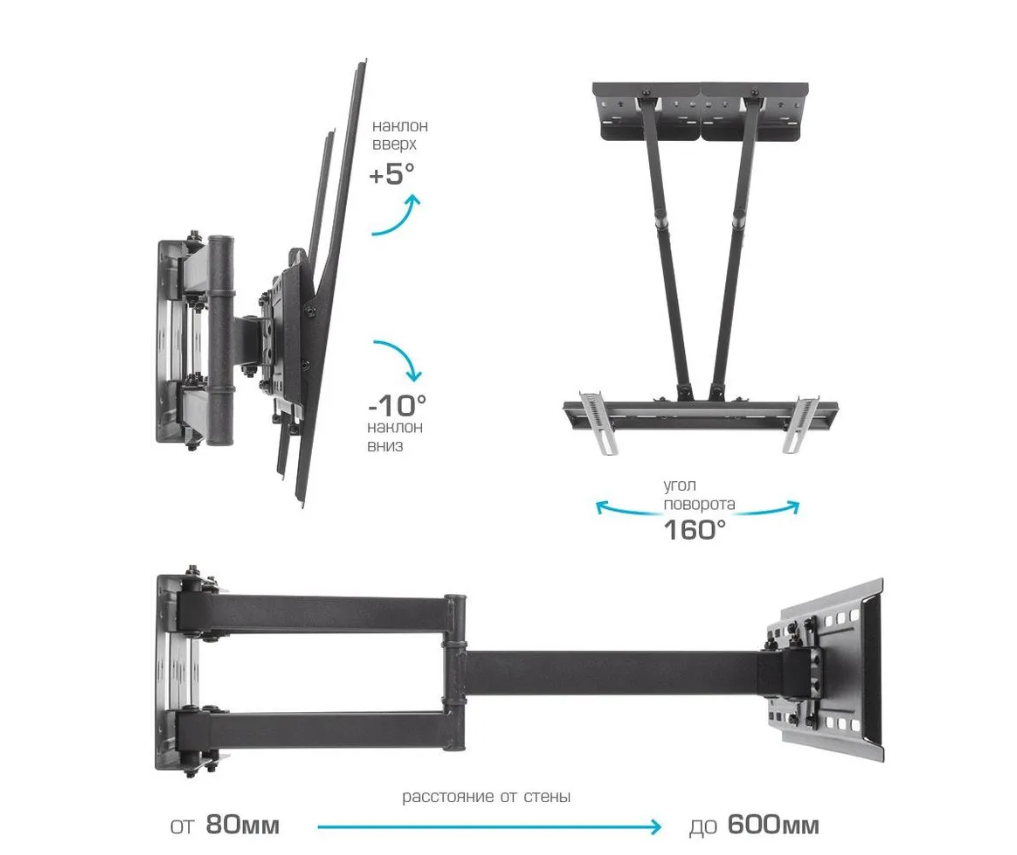 Кронштейны для техники Kromax Кронштейн настенный Kromax GALACTIC-44 32"-70" (наклон +5°/-10°, поворот 160°, до 45 кг, черный)