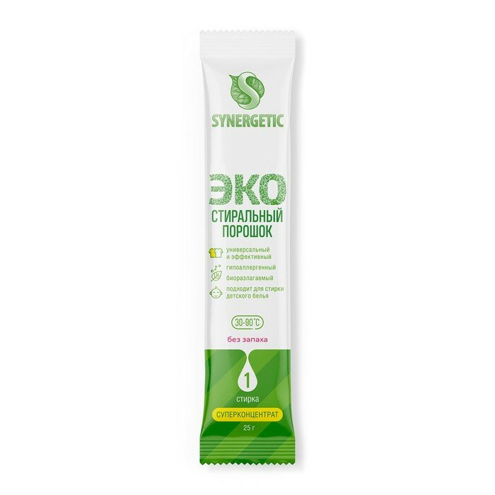 Отзывы на Стиральный порошок Synergetic в стиках, концентрат, биоразлагаемый, гипоаллергенный, 100 стиков *25 г