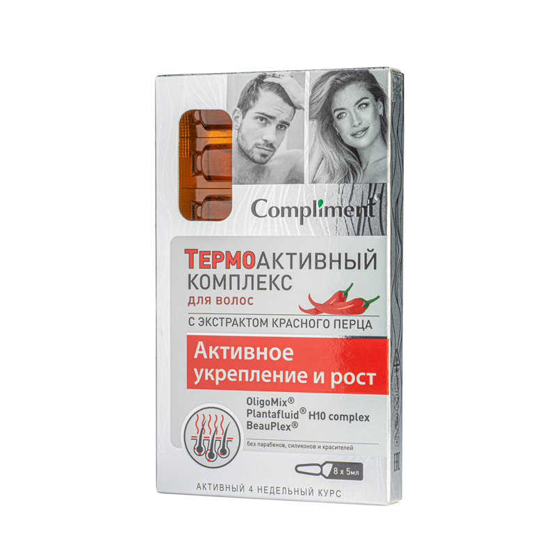 Compliment Термоактивный комплекс для волос с экстрактом красного перца Активное укрепление и рост, 5 мл, 8 шт., ампулы