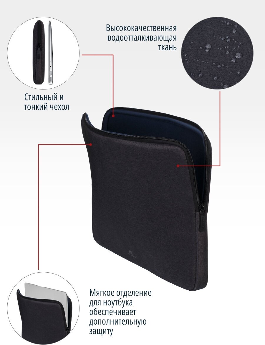 Чехол для ноутбука RivaCase 7704, 13.3"-14", чёрный