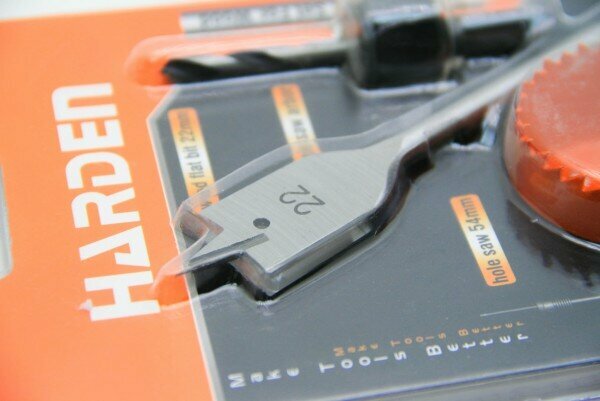| Сверла подробно | кольцевая пила (диаметр 54 мм); перьевое сверло (ширина 25 мм, длина 152 мм); державка для пилы с центрирующим сверлом (диаметр 6 мм) |