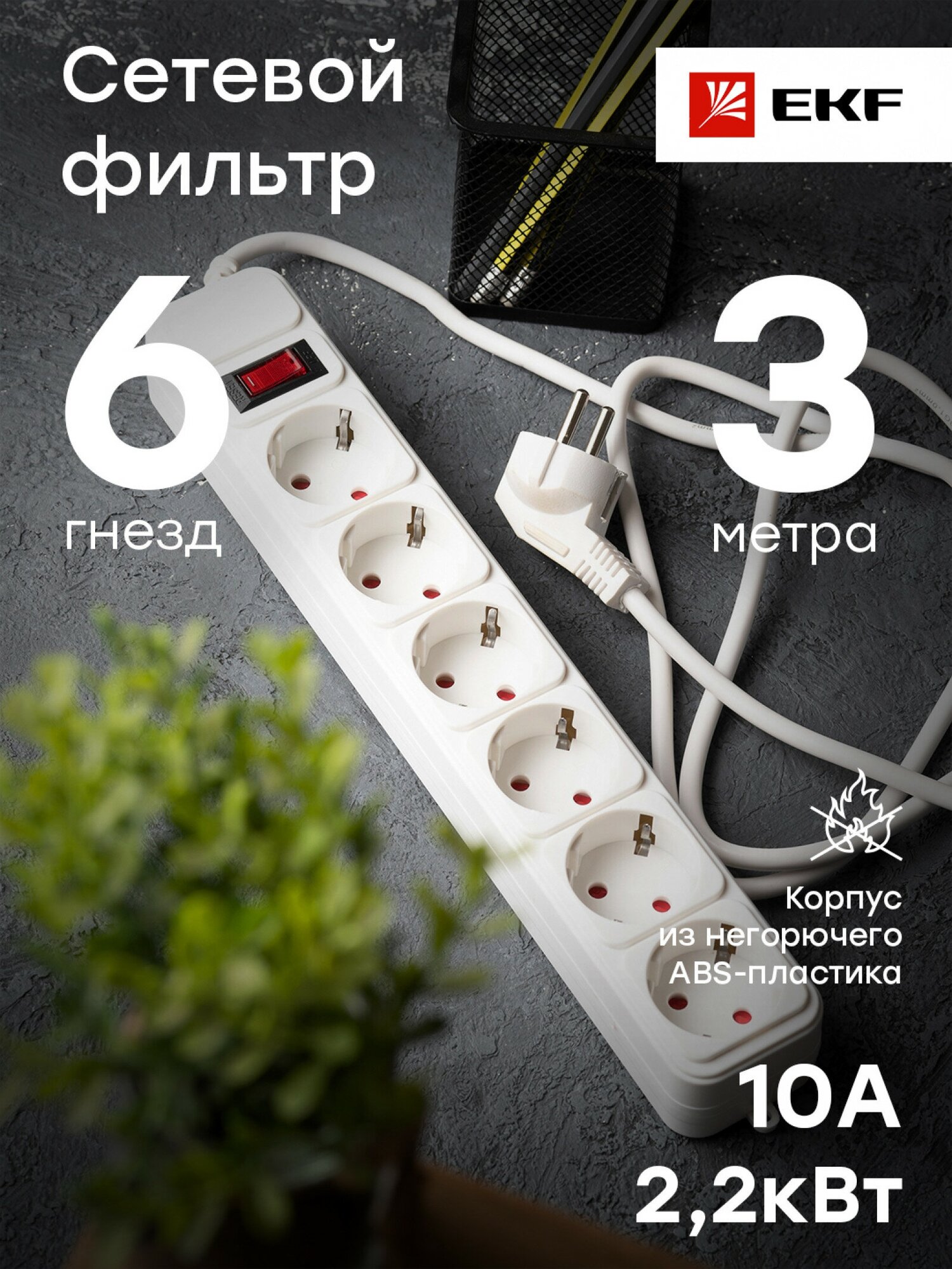 Сетевой фильтр EKF UFP10-375-6-03 6*3м 10А/2,2 кВт с выкл. c/з ПВС 3х0,75 Блокбастер EKF PROxima информация: