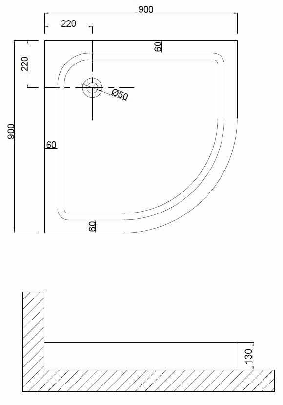 Душевой поддон NG- 90-90 (90*90*13) полукруг, поддон для моделей 6606, 6806
