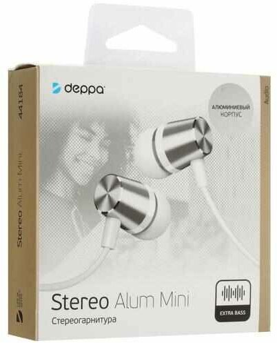 Гарнитура DEPPA Stereo Alum Mini, 3.5 мм, вкладыши, серебристый/белый [44184]