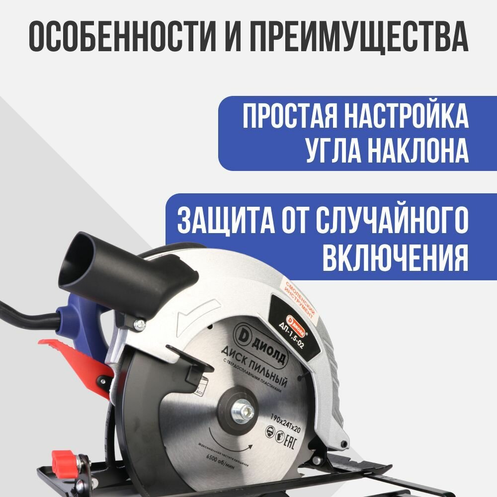 Дисковая пила диолд ДП-1,5-02 10061105, 1500 Вт, синий/черный 10 999 ₽