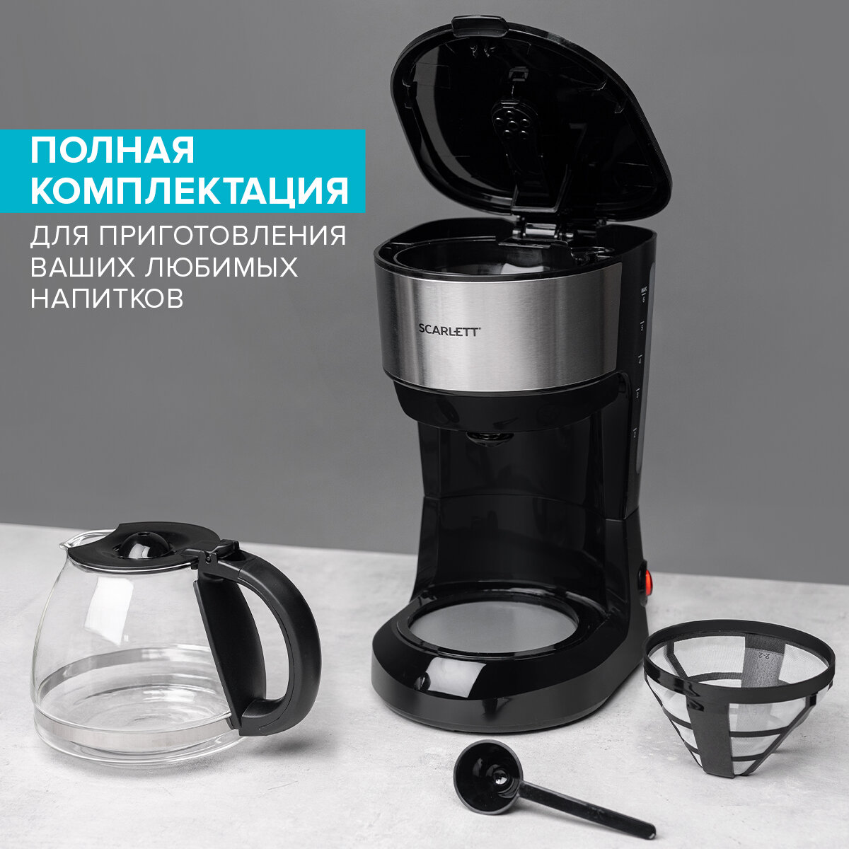 Кофеварка Scarlett SC-CM33012, капельная, черный 5 972 ₽