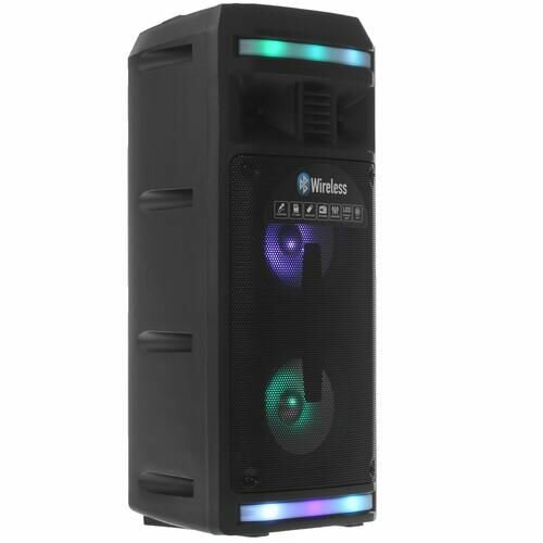 Портативная беспроводная блютуз колонка / Музыкальный центр Ginzzu GM-208 с функцией Bluetooth v4.2 , Гарантия 2 года, 50Вт, USB-flash, microSD, FM-радио, пульт ДУ, эквалайзер, караоке, динамическая LED подсветка динамиков информация: