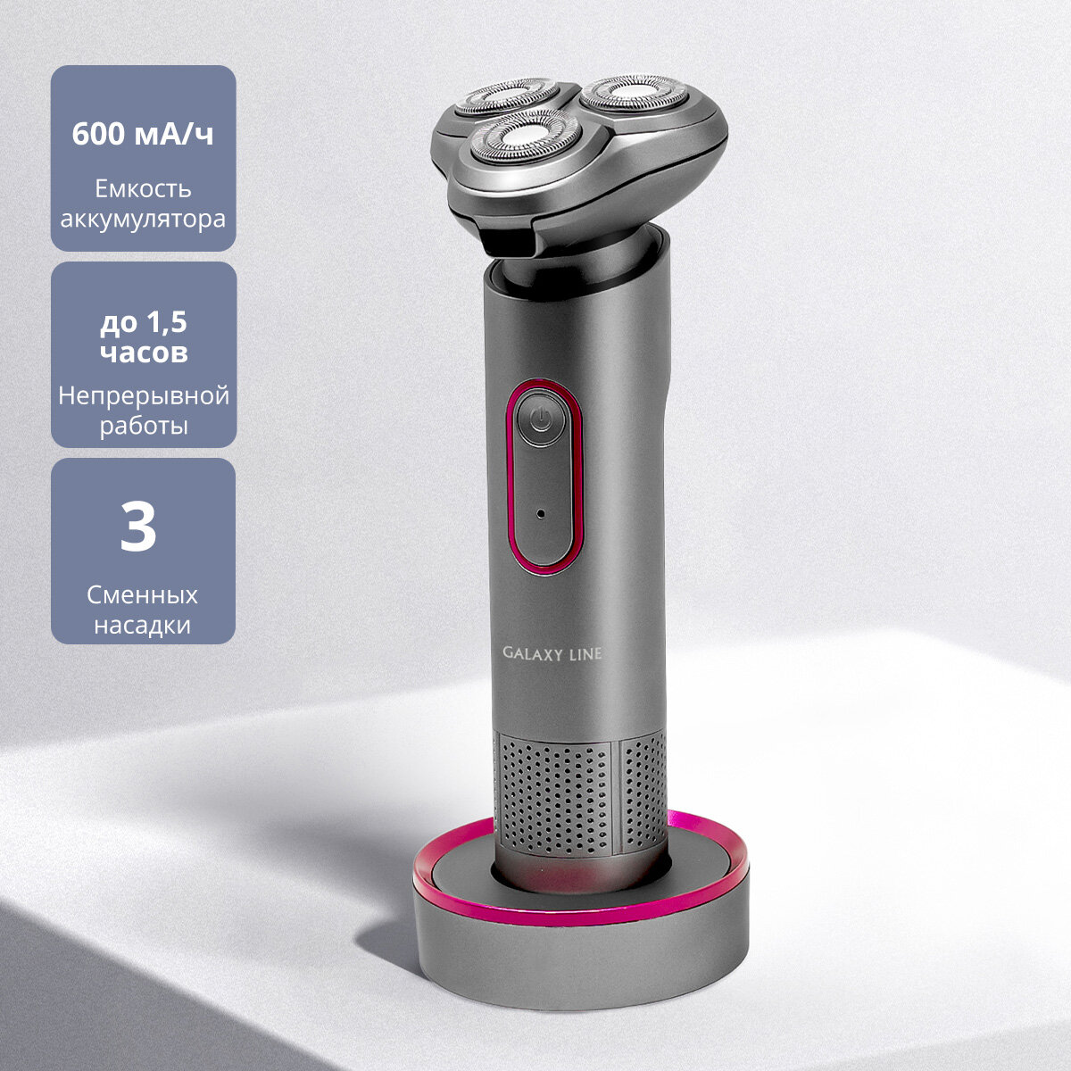 Электробритва Galaxy GL 4210, 5 Вт, АКБ, роторная, триммер, 3 плавающих головки, серая