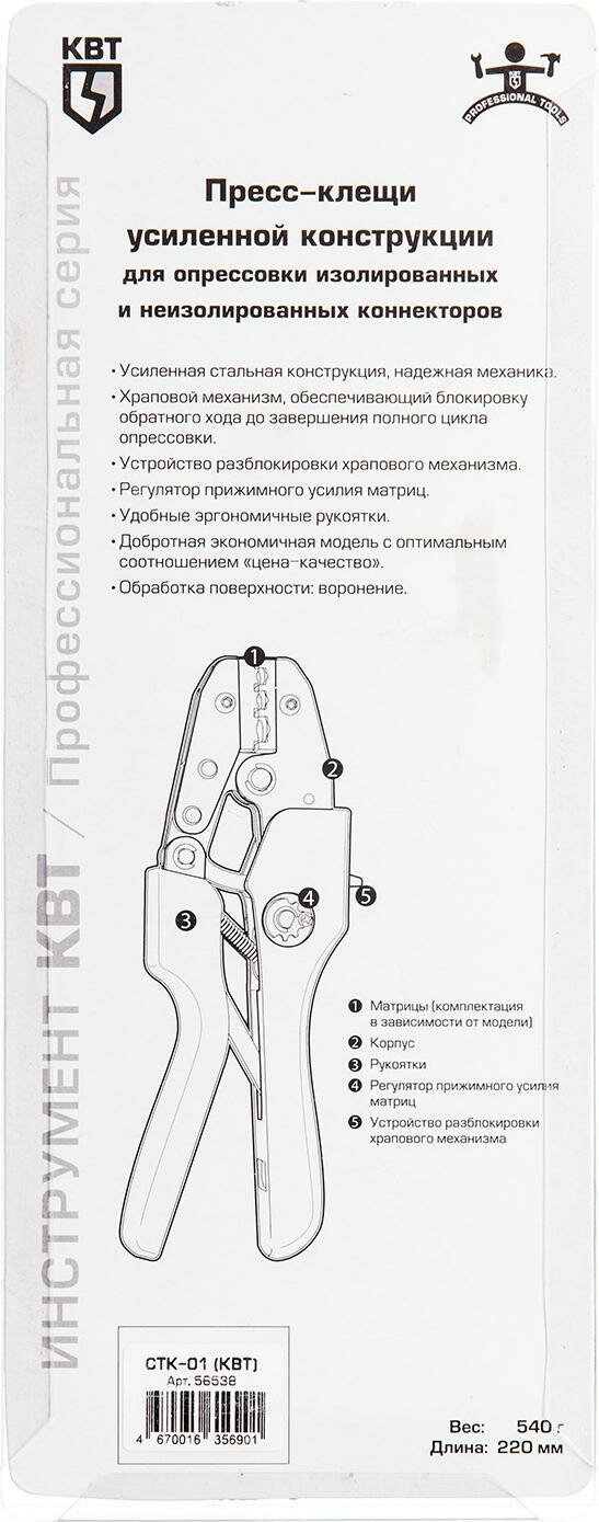 Клещи обжимные CTK-01 0.25-6 кв.мм информация: