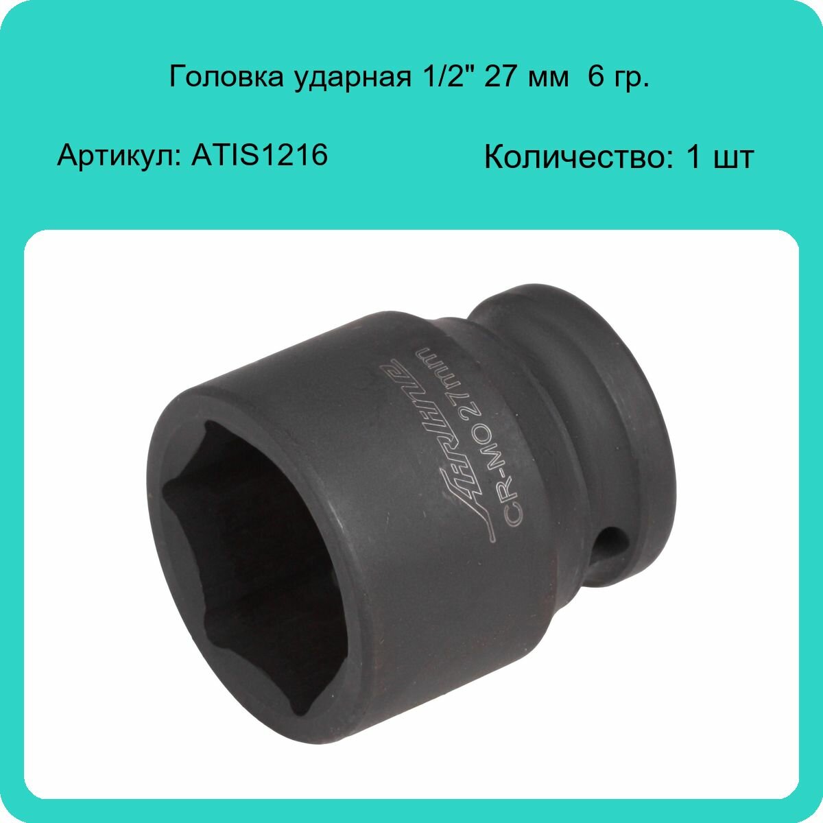 Головка ударная торцевая 1/2 DR шестигранная 27мм (AT-IS12-16) AIRLINE ATIS1216 | цена за 1 шт