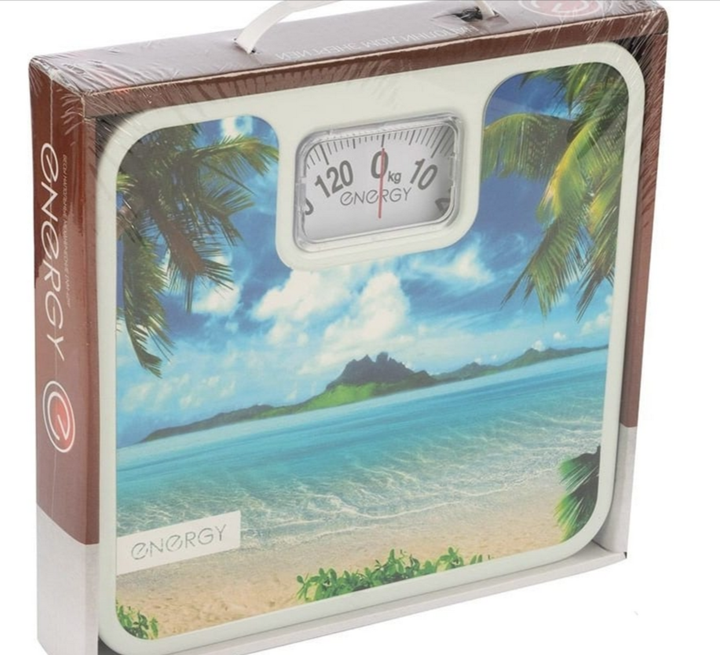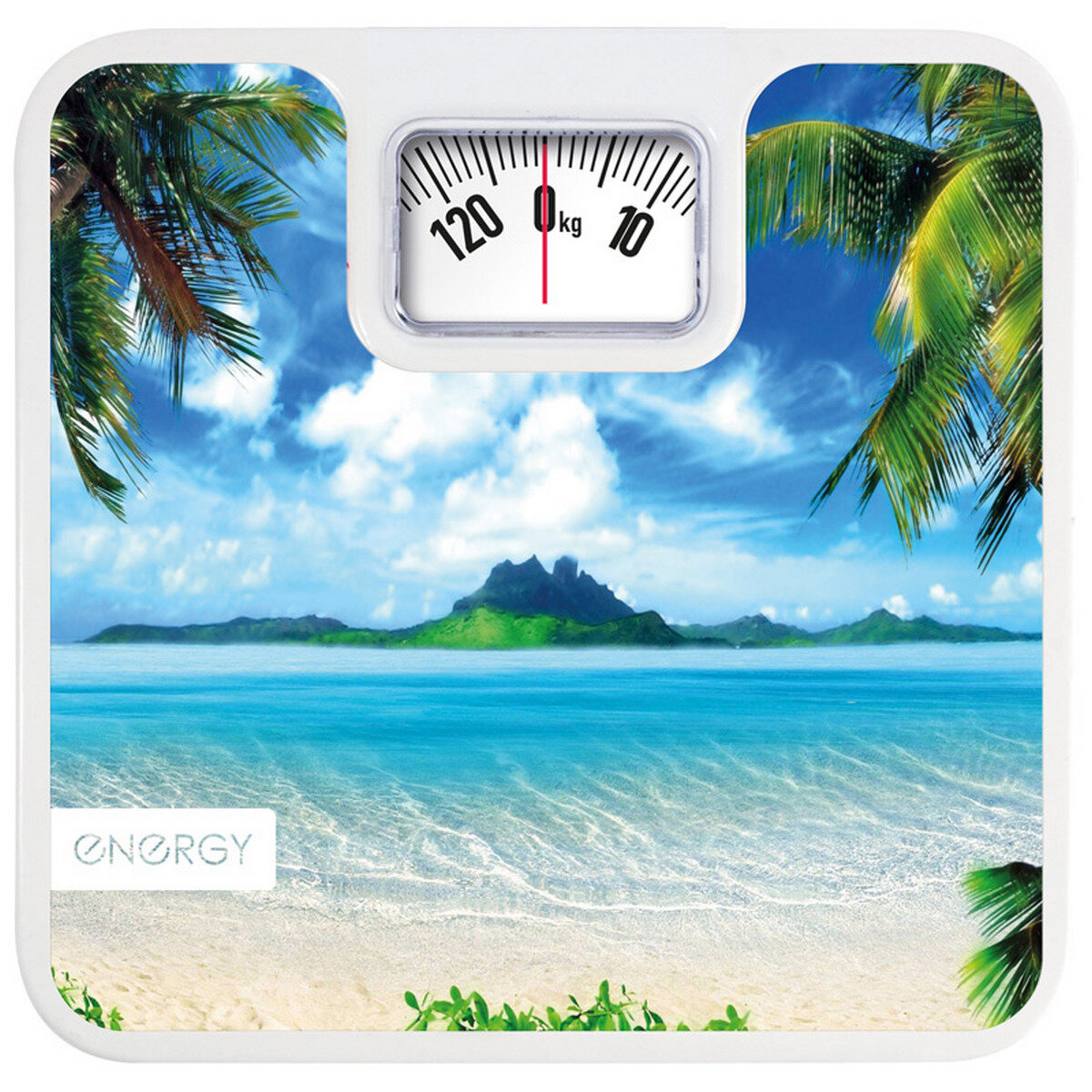 Весы напольные ENERGY ENМ-409F, механические, до 120 кг, картинка "пляж"