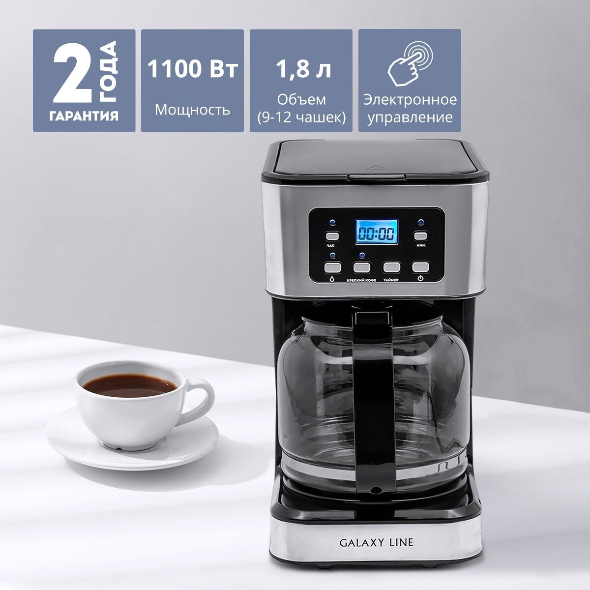 Galaxy Кофеварка Galaxy LINE GL 0710, капельная, 1100 Вт, 1.8 л, черная