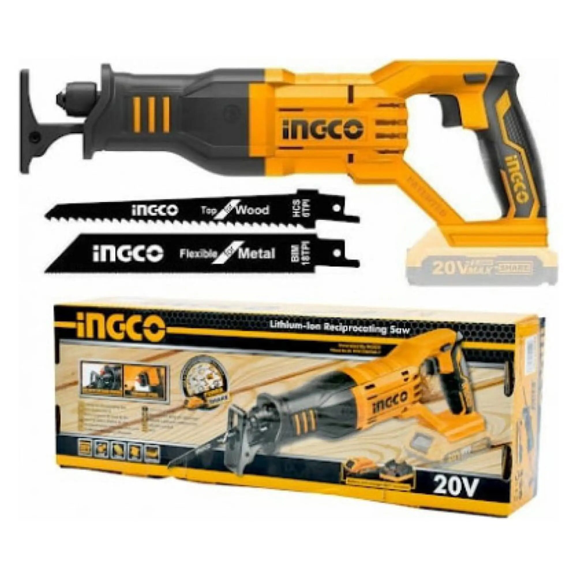 Пила сабельная аккумуляторная INGCO CRSLI1151, желтый/черный