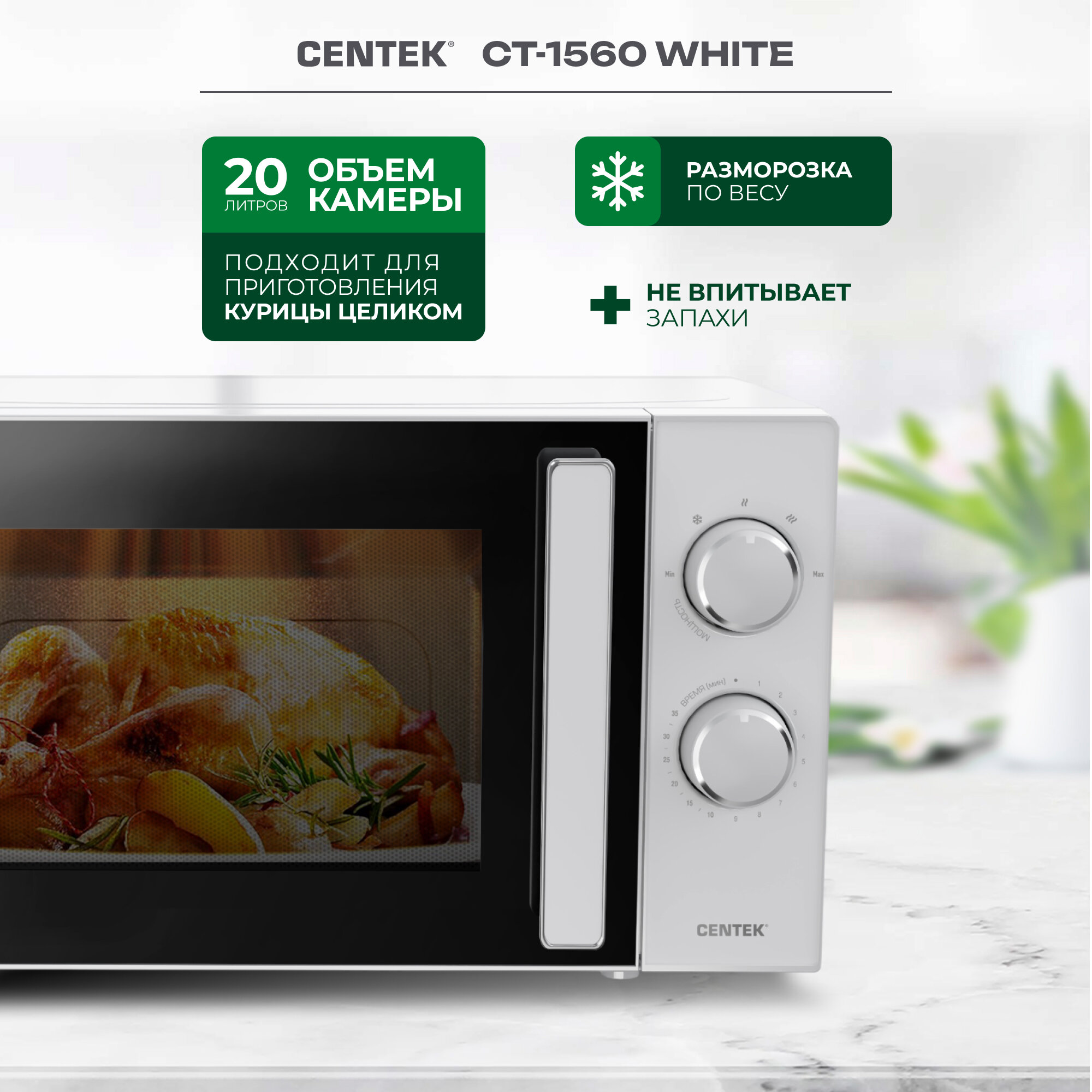 Микроволновая печь CENTEK CT-1560, белый информация:
