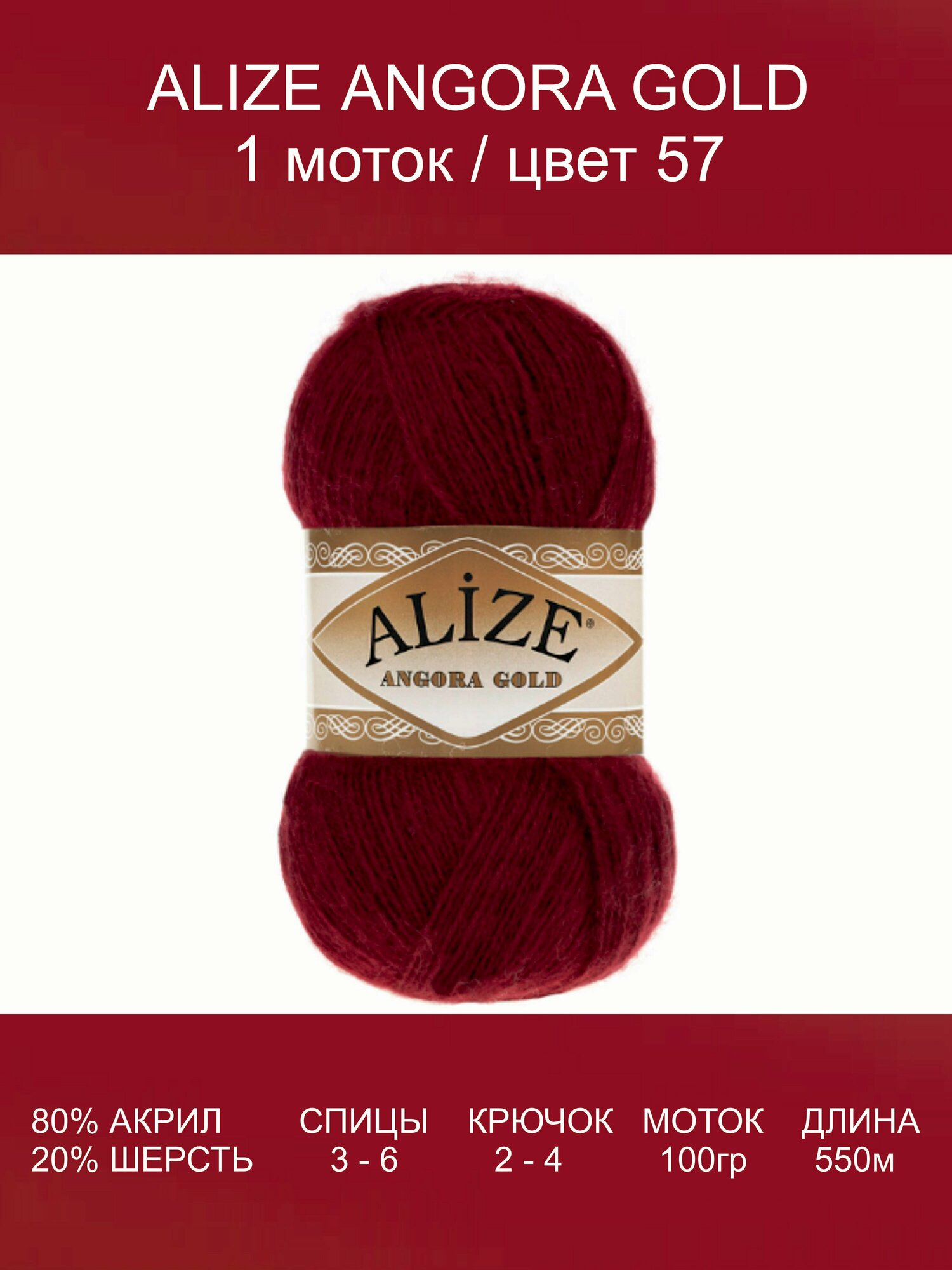 10 цен на Пряжа для вязания ALIZE Angora Gold Ализе Ангора Голд: 57 (бордовый), 1 шт 550 м 100 г, 20% шерсть, 80% акрил