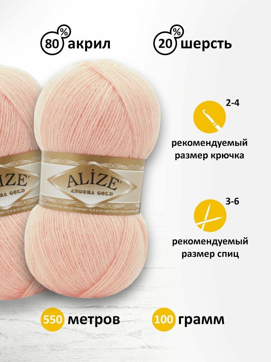 Пряжа Alize Angora Gold пастельно-абрикосовый (840), 80%акрил/20%шерсть, 550м, 100г, 5шт информация: