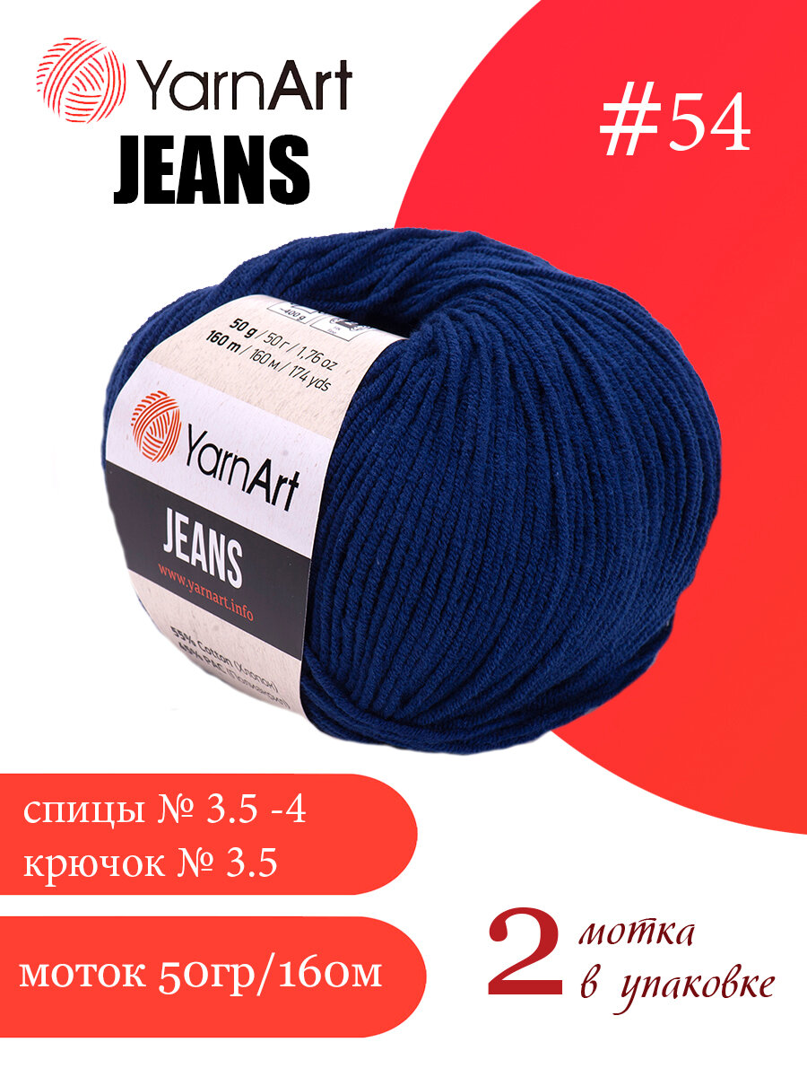 Пряжа YarnArt Jeans, 2шт, (54 т.синий), 55 % хлопок, 45 % акрил, 50 г, 160 м информация: