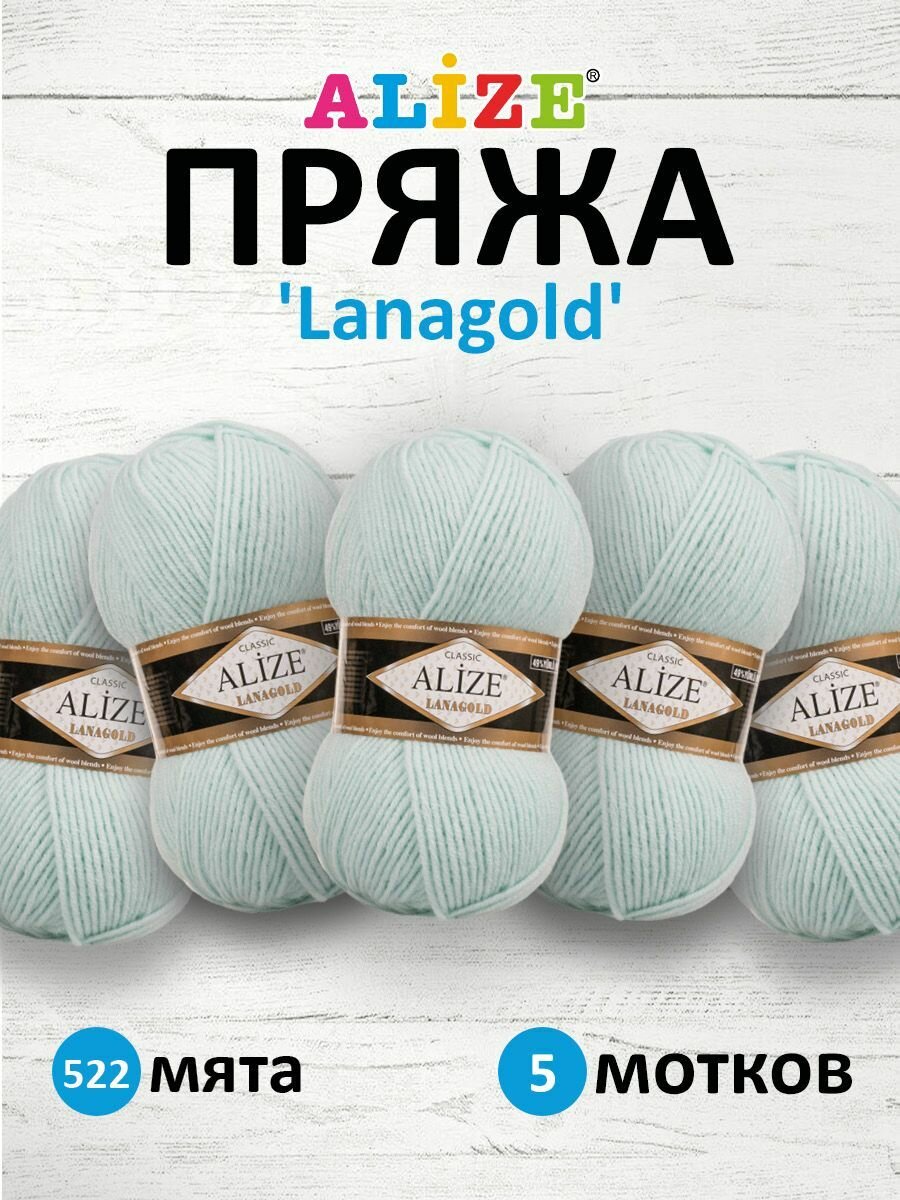 10 цен на Пряжа Alize LanaGold (522 мята), 5 шт. по 100 г, Alize