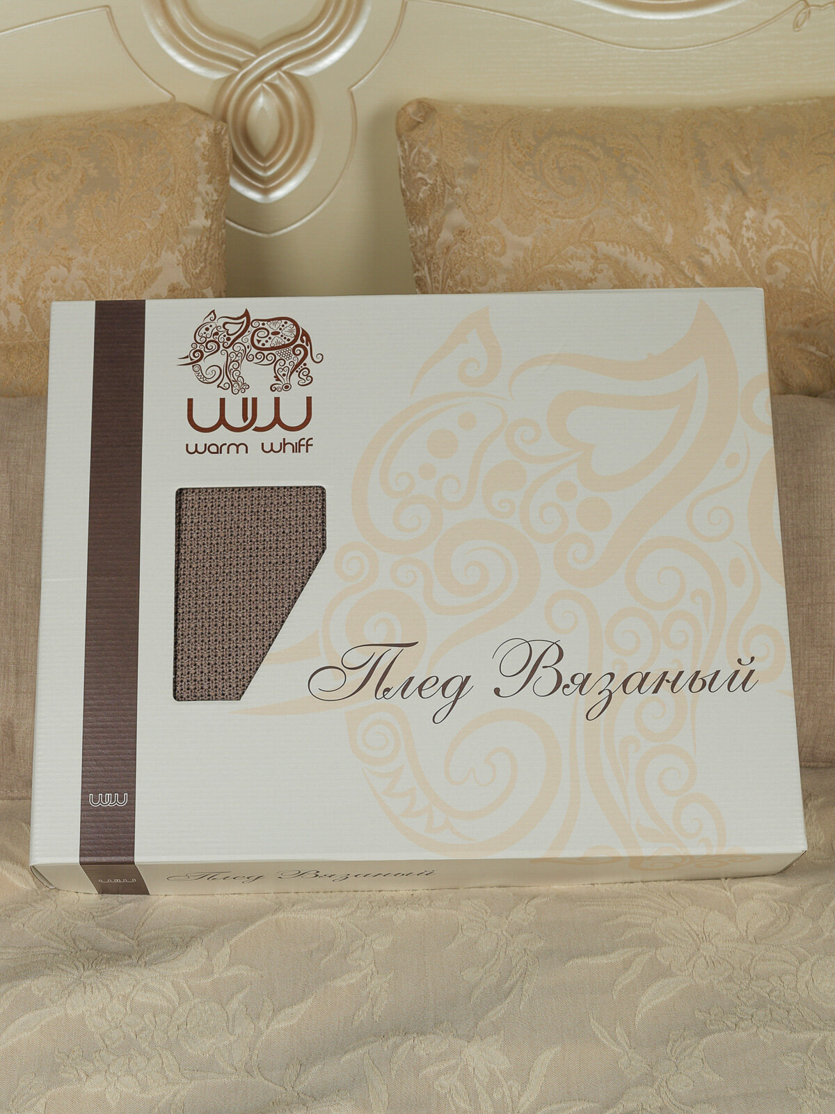 Плед 180х220, вязаный, Warm Whiff, коричневый, хлопок 100%, покрывало на кровать, на диван, на кресло, большой, тонкий, в подарочной коробке 3 900 ₽