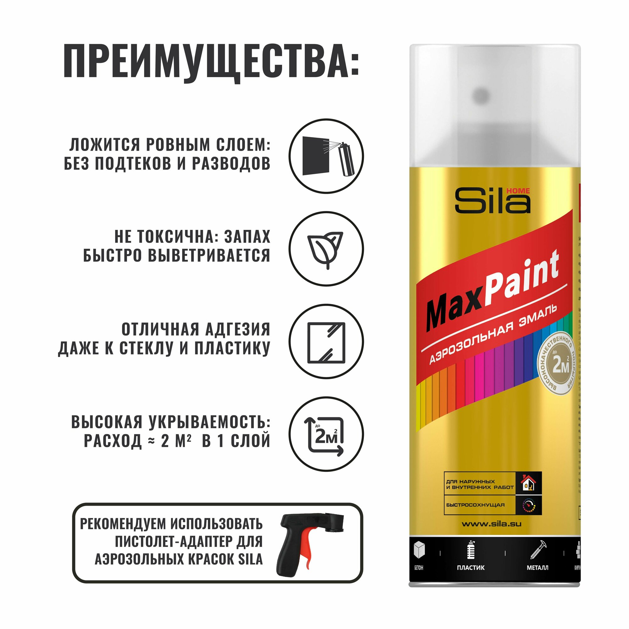 Sila HOME Max Paint, ЛАК глянцевый, аэрозольный, универс.,520мл информация: