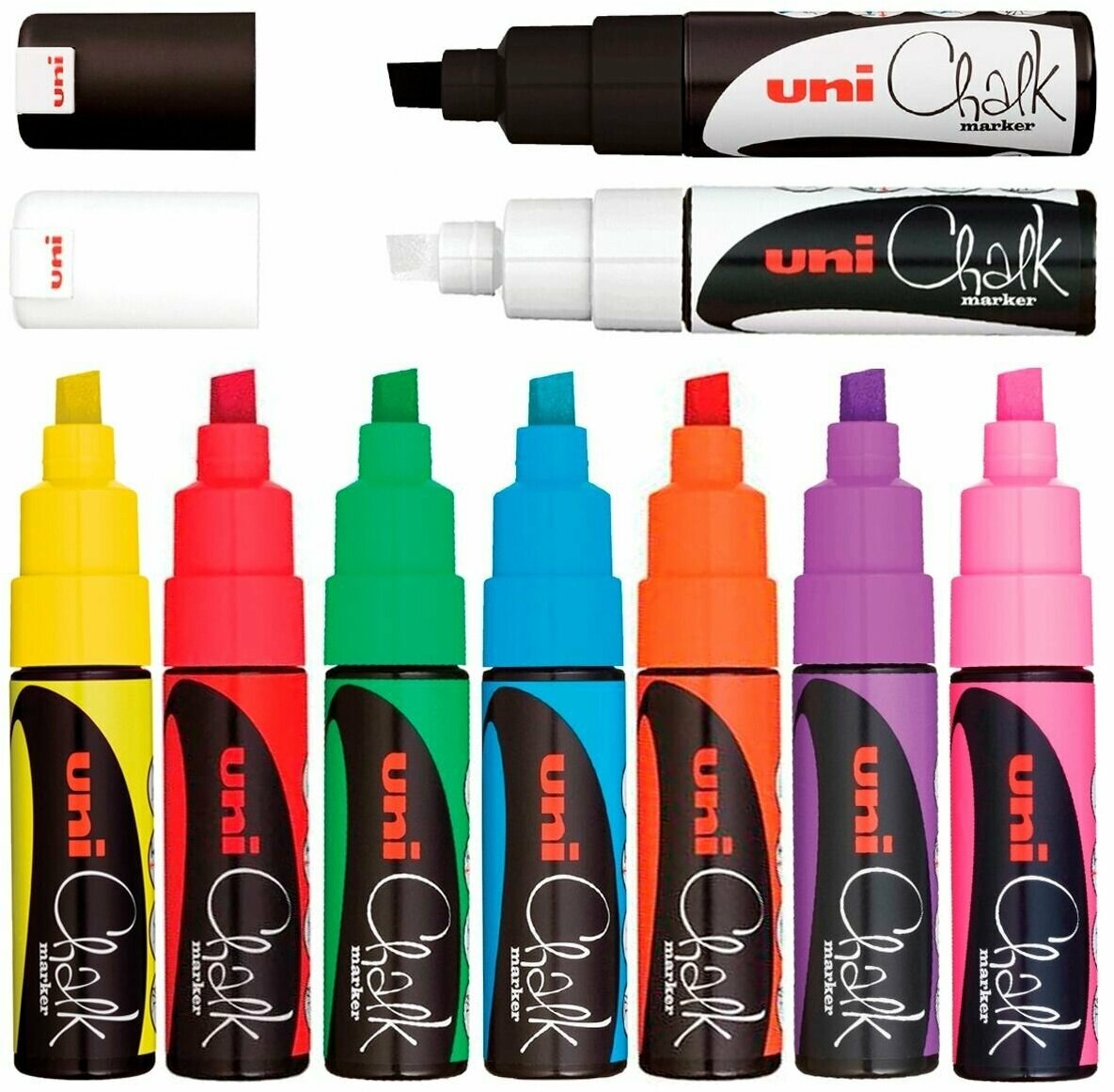 Маркер Маркер меловой UNI "Chalk", 8 мм, белый, влагостираемый, для гладких поверхностей, PWE-8K WHITE