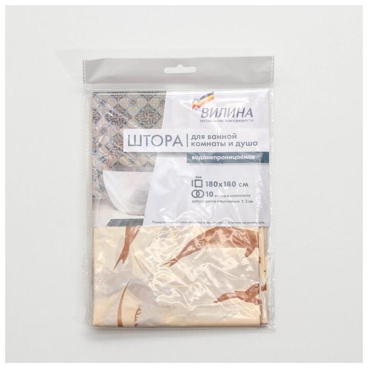 Штора для ванной комнаты VILINA водонепроницаемая полиэтиленовая 180х180 см Барокко бежевое