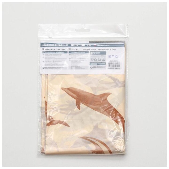 Штора для ванной комнаты «Дельфины», 180×180 см, полиэтилен, цвет бежевый информация: