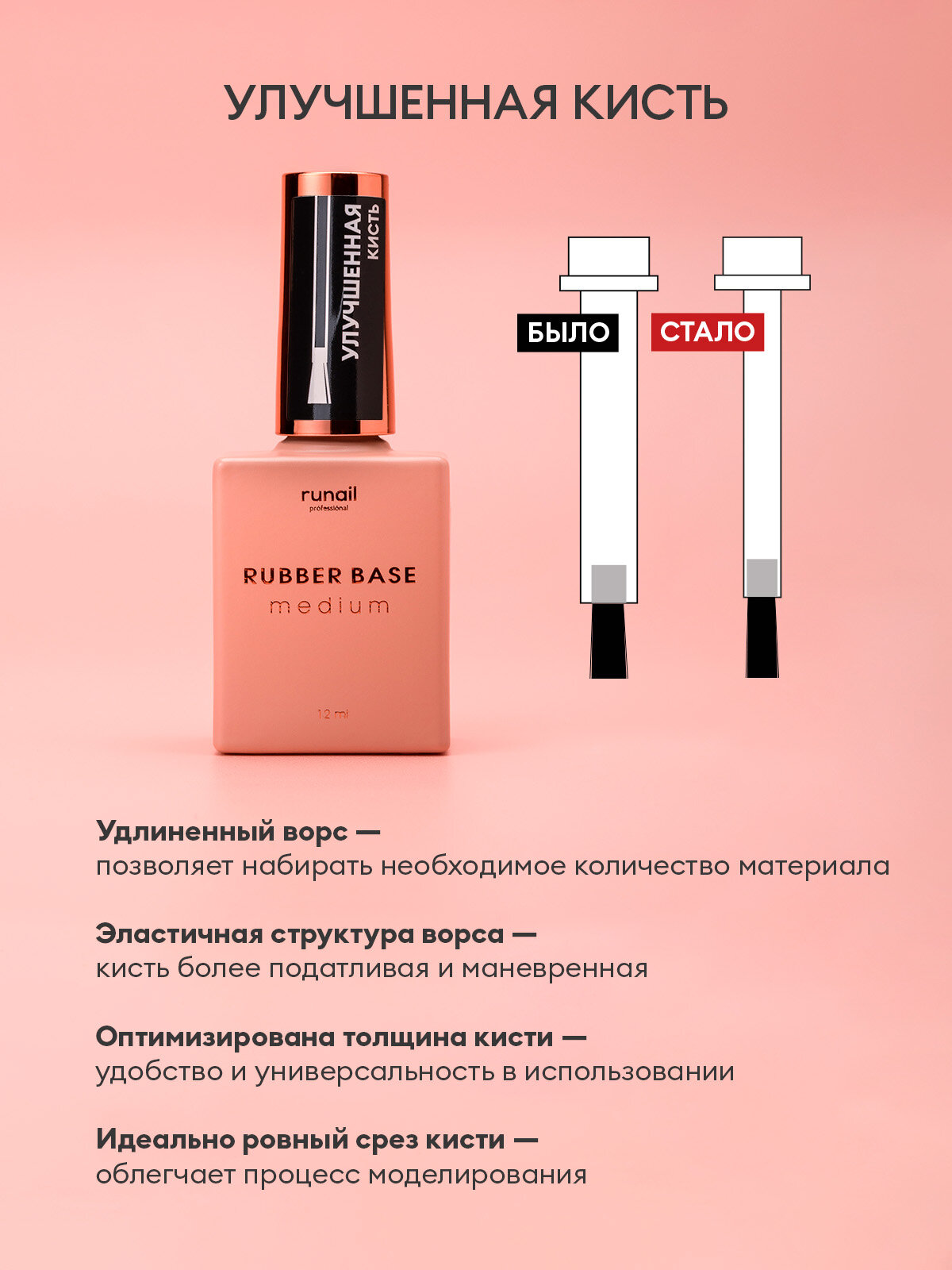 ruNail Professional каучуковая база для ногтей RUBBER BASE medium 12мл 356 ₽