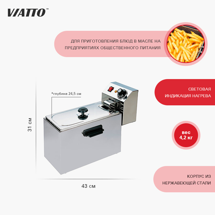 Фритюрница электрическая VIATTO VA-DF4, настольная электрофритюрница информация: