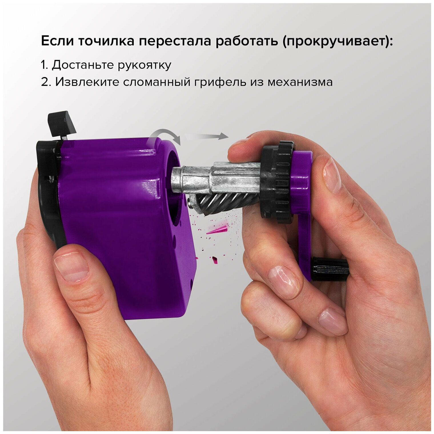 Точилка механическая настольная для карандашей с контейнером для стружки Brauberg Jet, металлический механизм, корпус фиолетовый, 229569