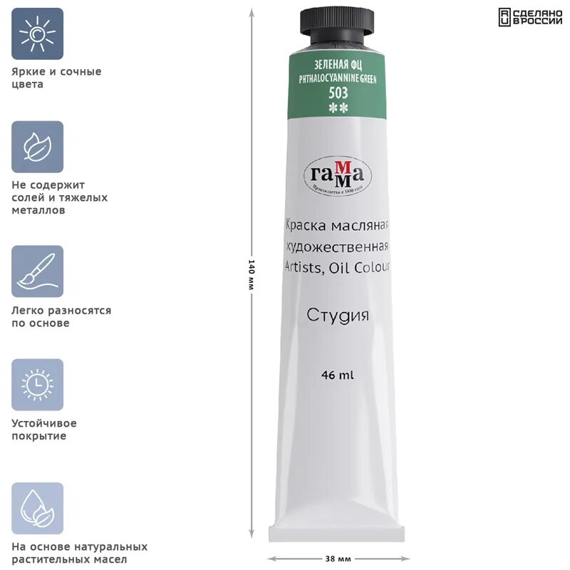 Гамма Краска масляная в тубе 46 мл, Гамма "Студия", №503 зелёная ФЦ информация: