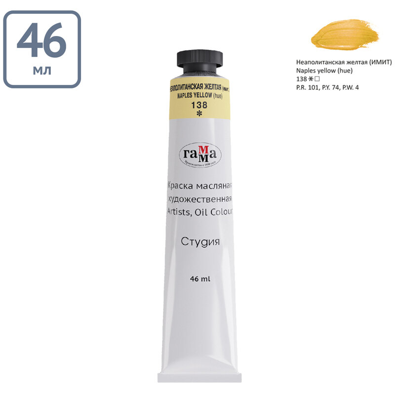 Краска масляная художественная Гамма "Студия", 46мл, туба, неаполитанская желтая (имит.), 2 штуки информация: