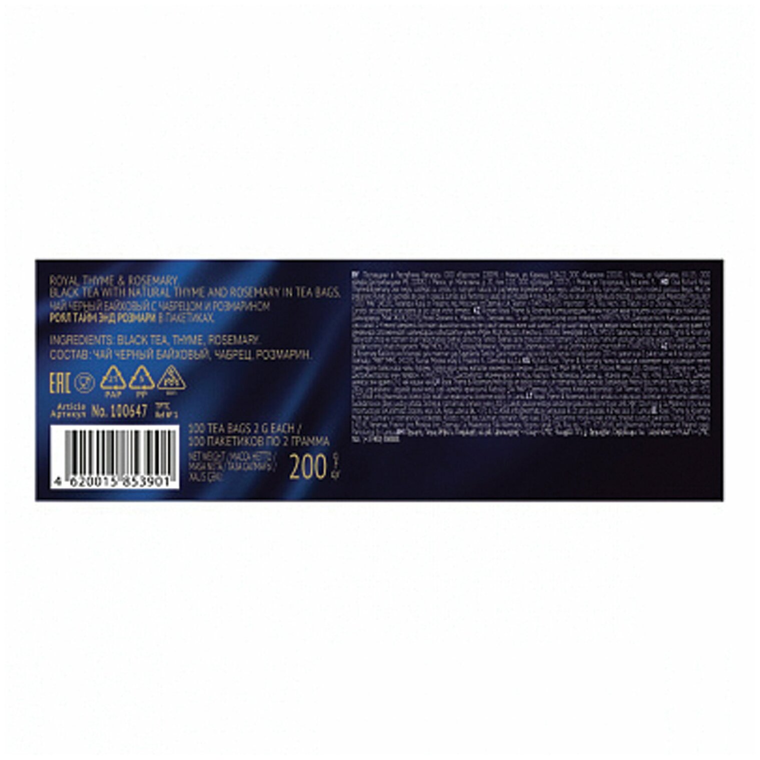 Чай "Royal Thyme & Rosemary" черный с чабрецом и розмарином, Россия, количество пакетиков в упаковке 100