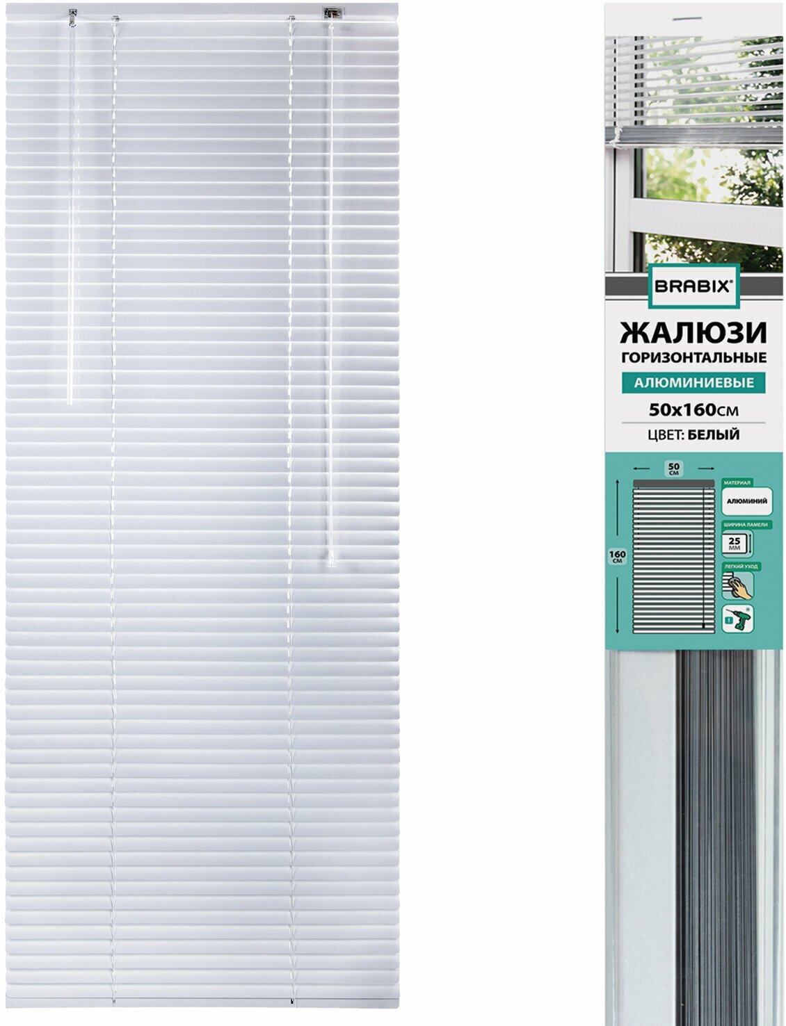 Жалюзи горизонтальные BRABIX 45х160 см, алюминий, цвет белый 1 330 ₽