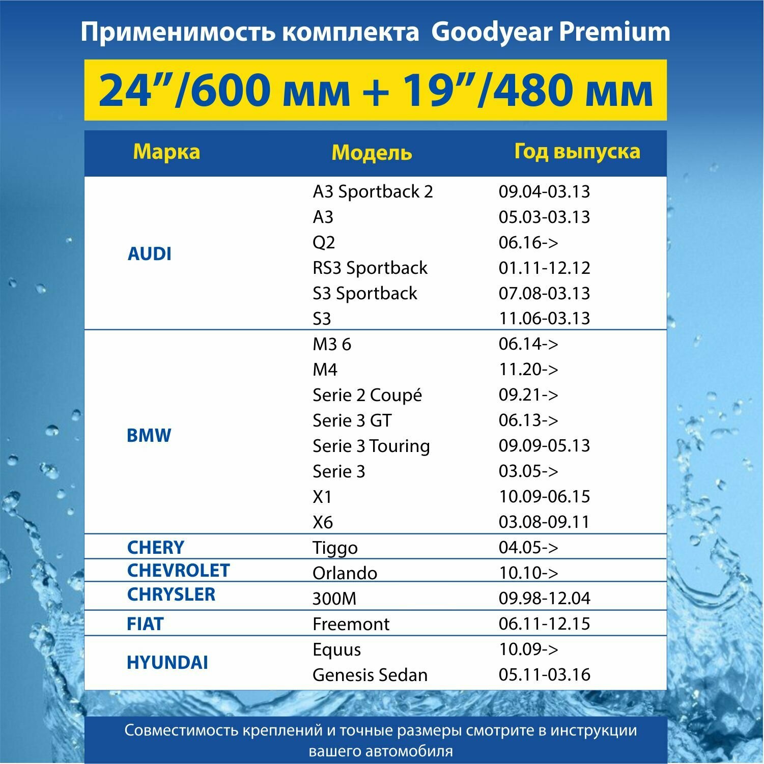 0 отзывов, средняя оценка 0. Чтобы купить «2 Щетки стеклоочистителя в комплекте (60+48 см), Дворники для автомобиля GOODYEAR для MERCEDES-BENZ Serie GLA, Serie A; INFINITI QX56; BMW X6; NISSAN Navara» по лучшей цене мы сканируем авито, алиэкспресс, маркет, озон, савеловский, плеер, горбушку, беру, официальные сайты и находим минимальную. Администрация не несет ответсвенность актуальность цен на 2 Щетки стеклоочистителя в комплекте (60+48 см), Дворники для автомобиля GOODYEAR для MERCEDES-BENZ Serie GLA, Serie A; INFINITI QX56; BMW X6; NISSAN Navara, более подробно узнавайте на сайте магазина.