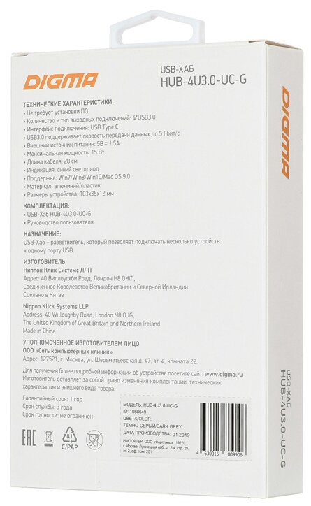 DIGMA HUB-4U3.0-UC-G 1 476 ₽