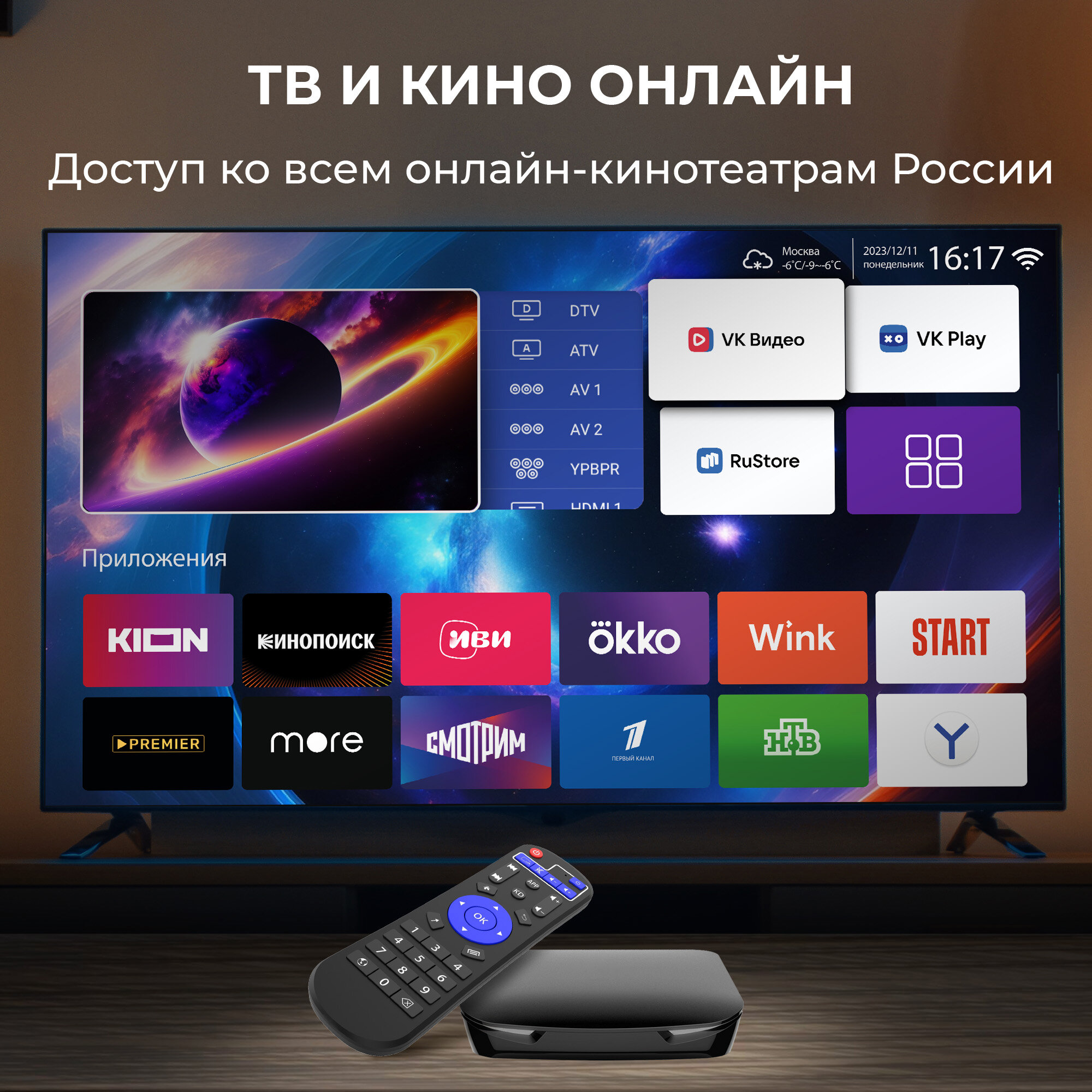 | Подробная комплектация | устройство MEDIA ATV 8K, пульт ДУ, HDMI кабель, адаптер питания |