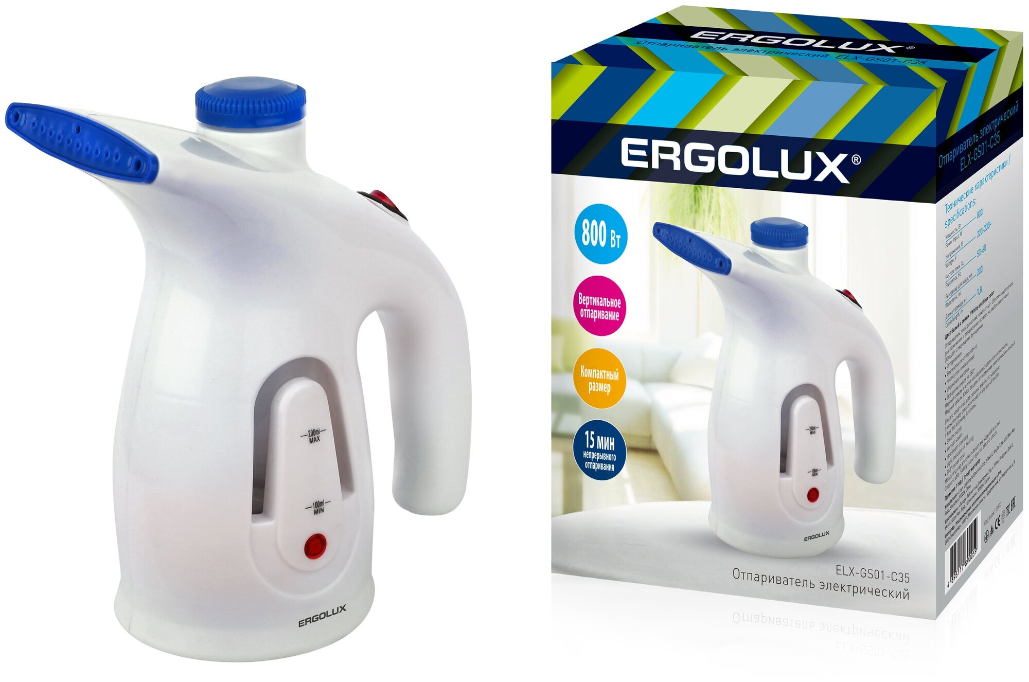 Компактный отпариватель ERGOLUX ELX-GS01-С35 белый/синий 200 мл, 220-240 В, 800 Вт